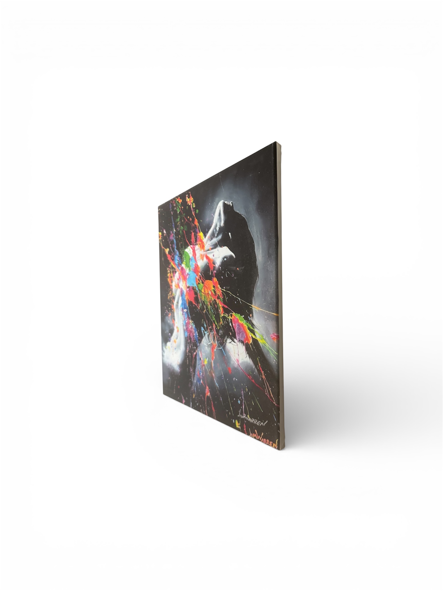 “Add A Little Color To Your Life” is a quintessential Jim Warren masterpiece that serves as both a stunning visual experience and a profound personal philosophy. Featuring his signature “Dream Maker” style, this piece encourages the viewer to break away from the mundane and embrace a world of vibrant possibility. This piece exhibits the artist’s signiture! This piece is a giclée stretched on wood bars and measures 20×16.