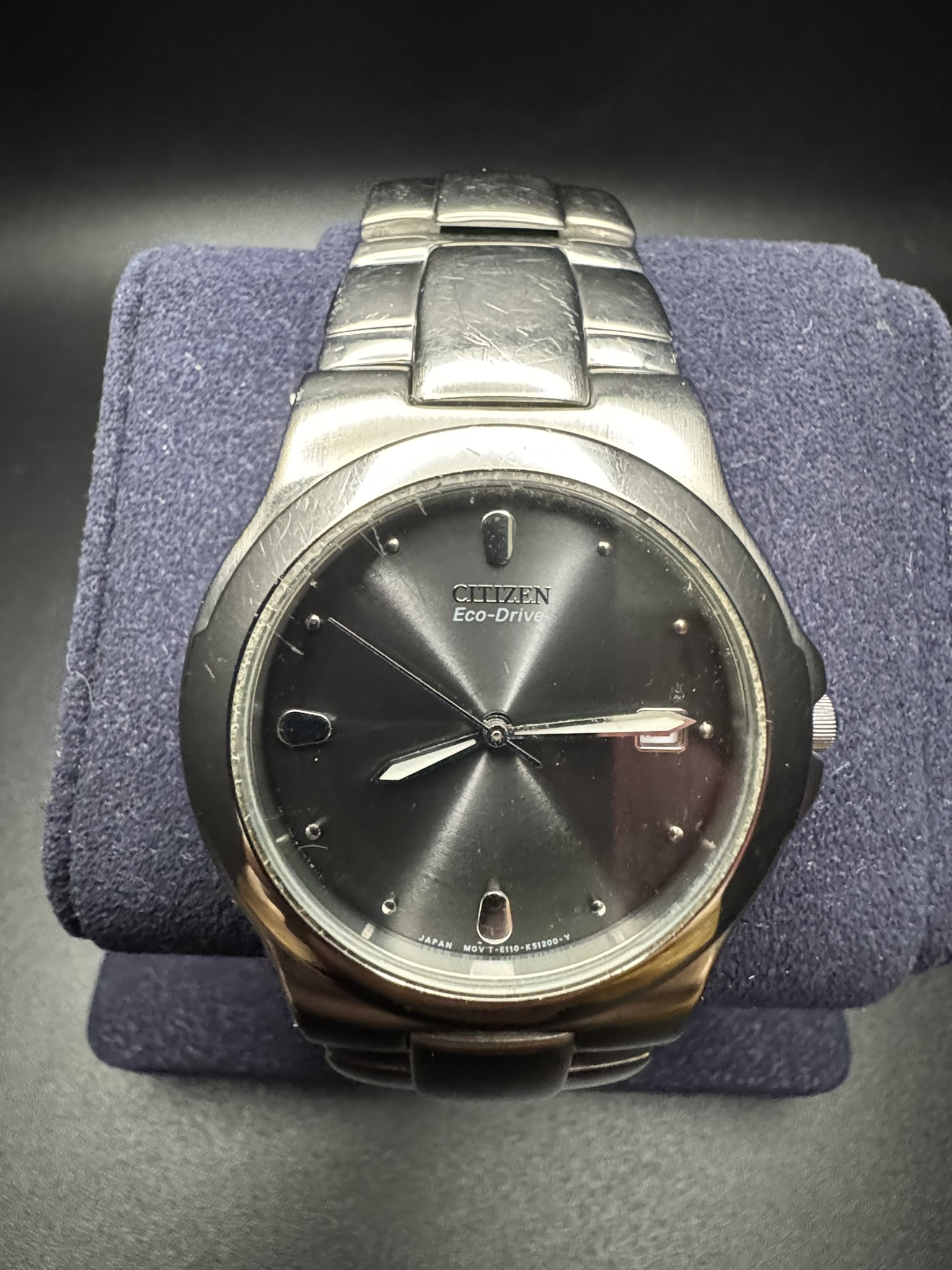 This watch is in Good Used Condition. The Eco-Drive movement holds a strong charge and keeps perfect time. The crystal and case show minor, honest wear consistent with careful use, with no major gouges or deep scratches. It has been professionally cleaned and is ready to wear immediately.
