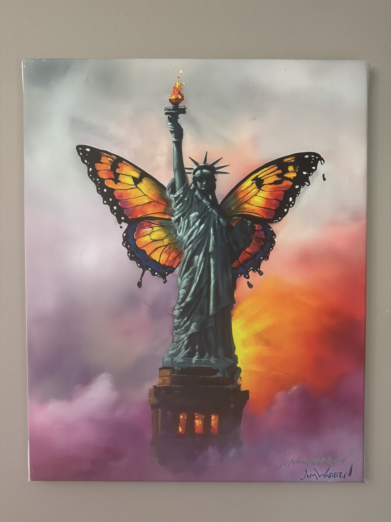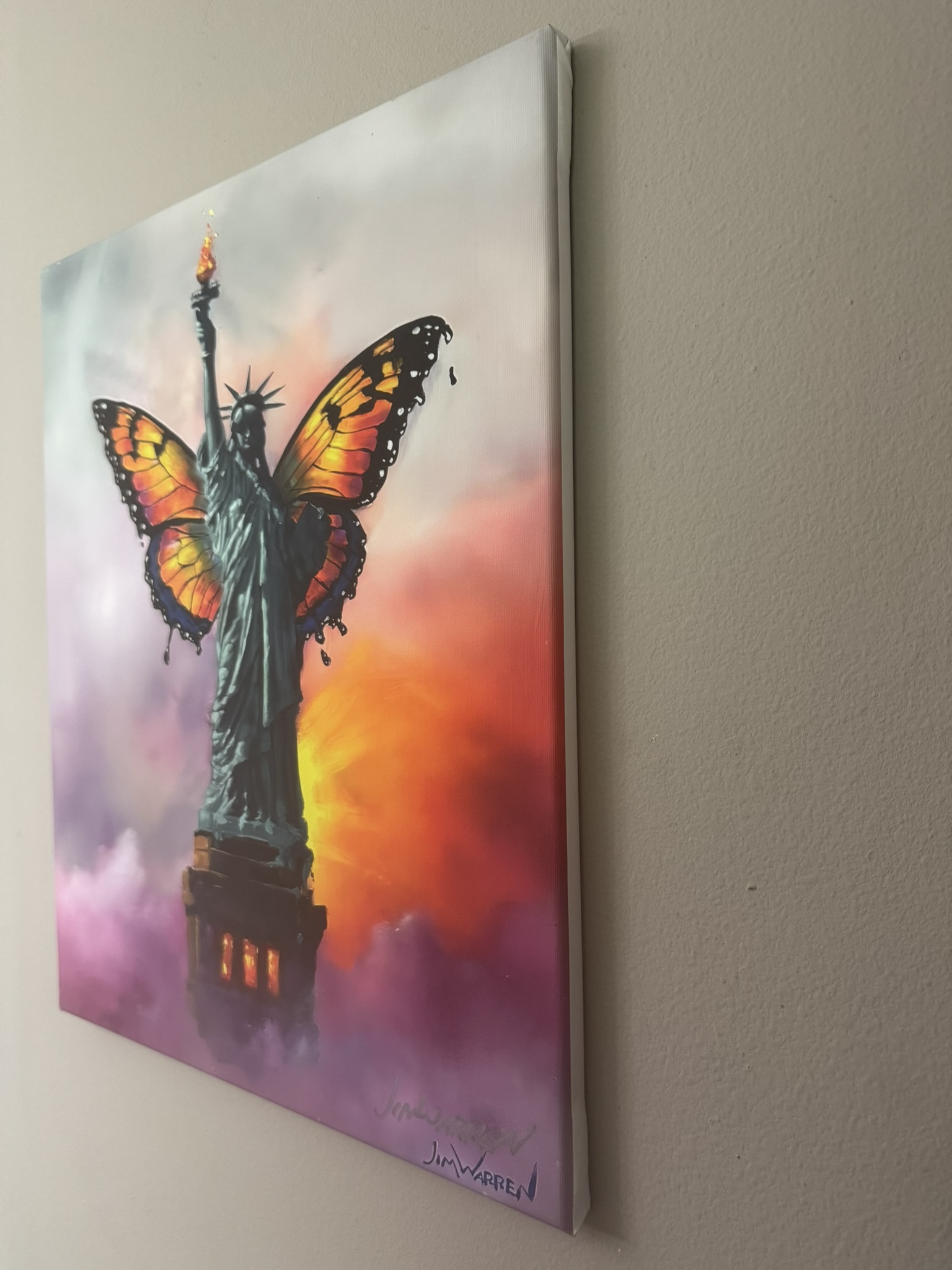 “Evolve or Die” is one of Jim Warren’s most provocative and personal works, serving as a visual manifesto for his artistic philosophy. This striking piece moves beyond his typical ethereal landscapes to present a “metaphorical ideal” of constant change and adaptation. It is a powerful statement for collectors who value resilience, growth, and the bold pursuit of one’s own path. This piece exhibits the artist’s signiture! This piece is a giclée stretched on wood bars and measures 20×16.