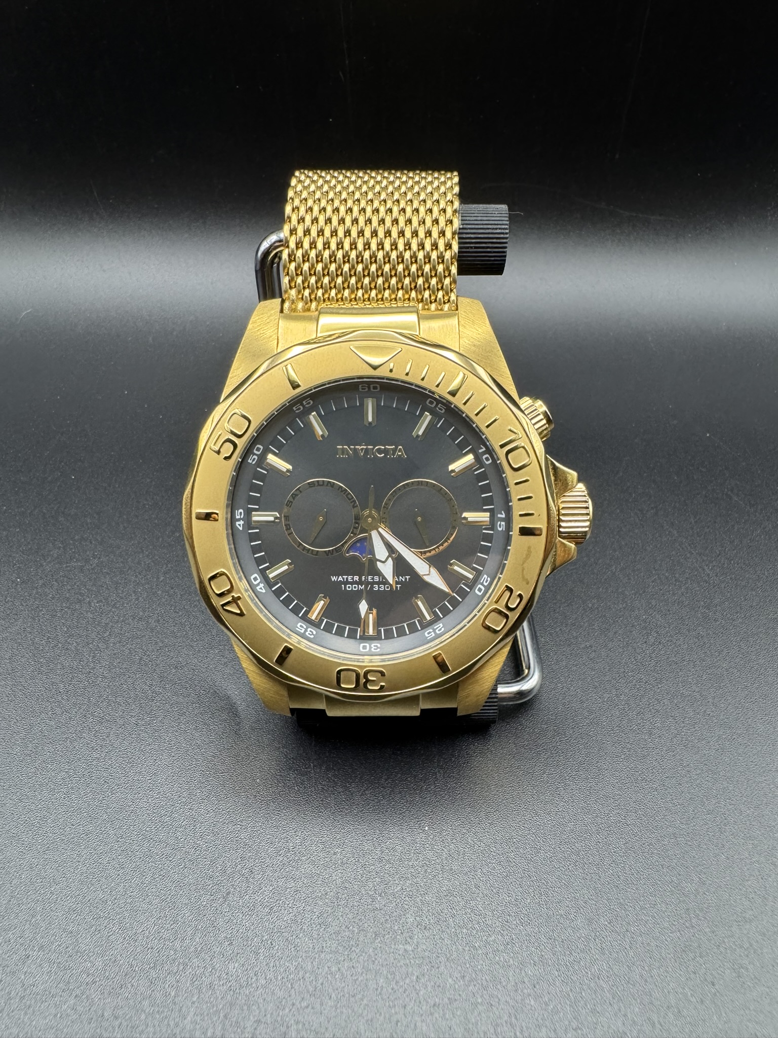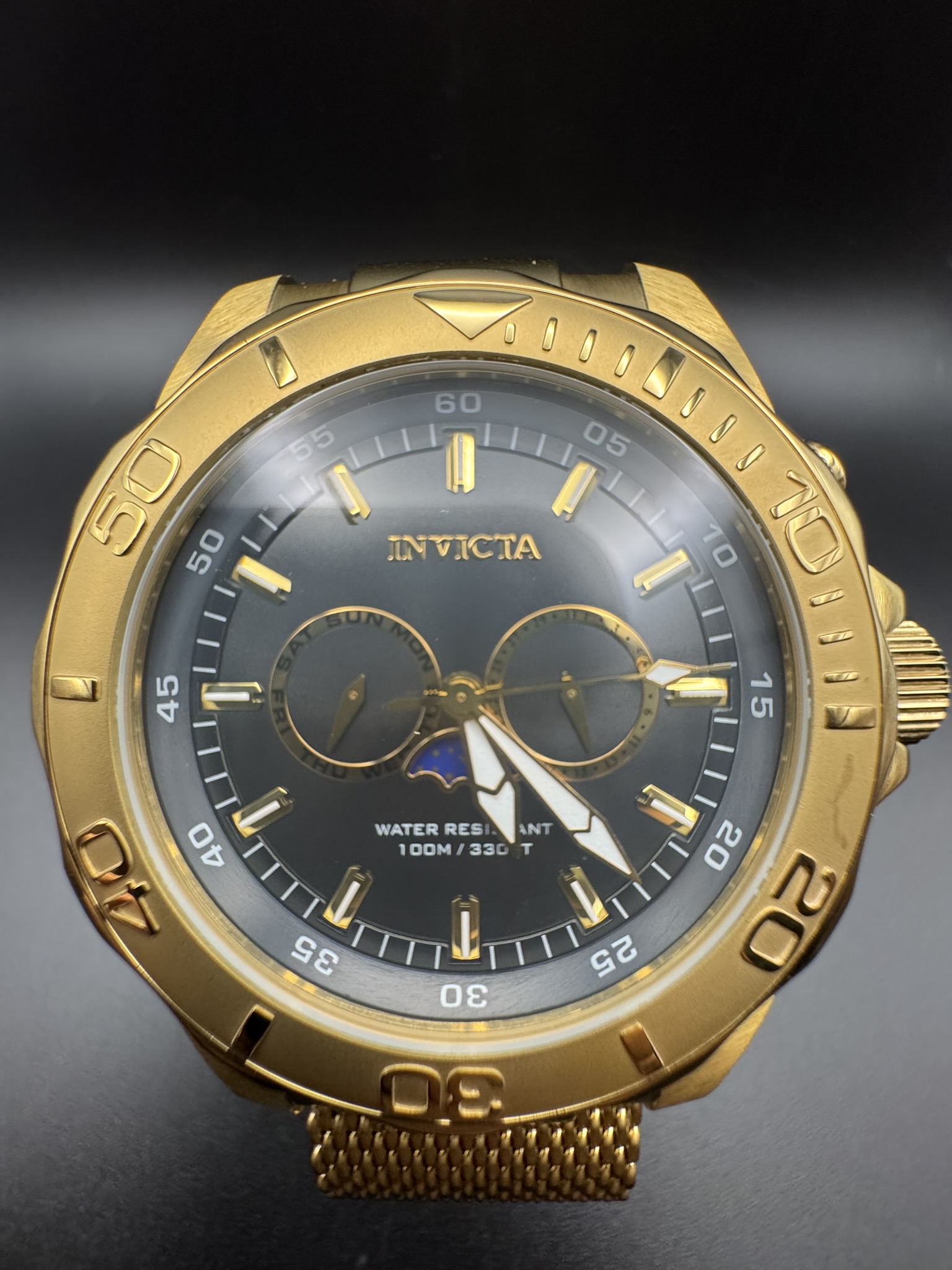 - Commanding 54mm Presence: Crafted from high-grade gold-tone stainless steel, the oversized case ensures you never go unnoticed.