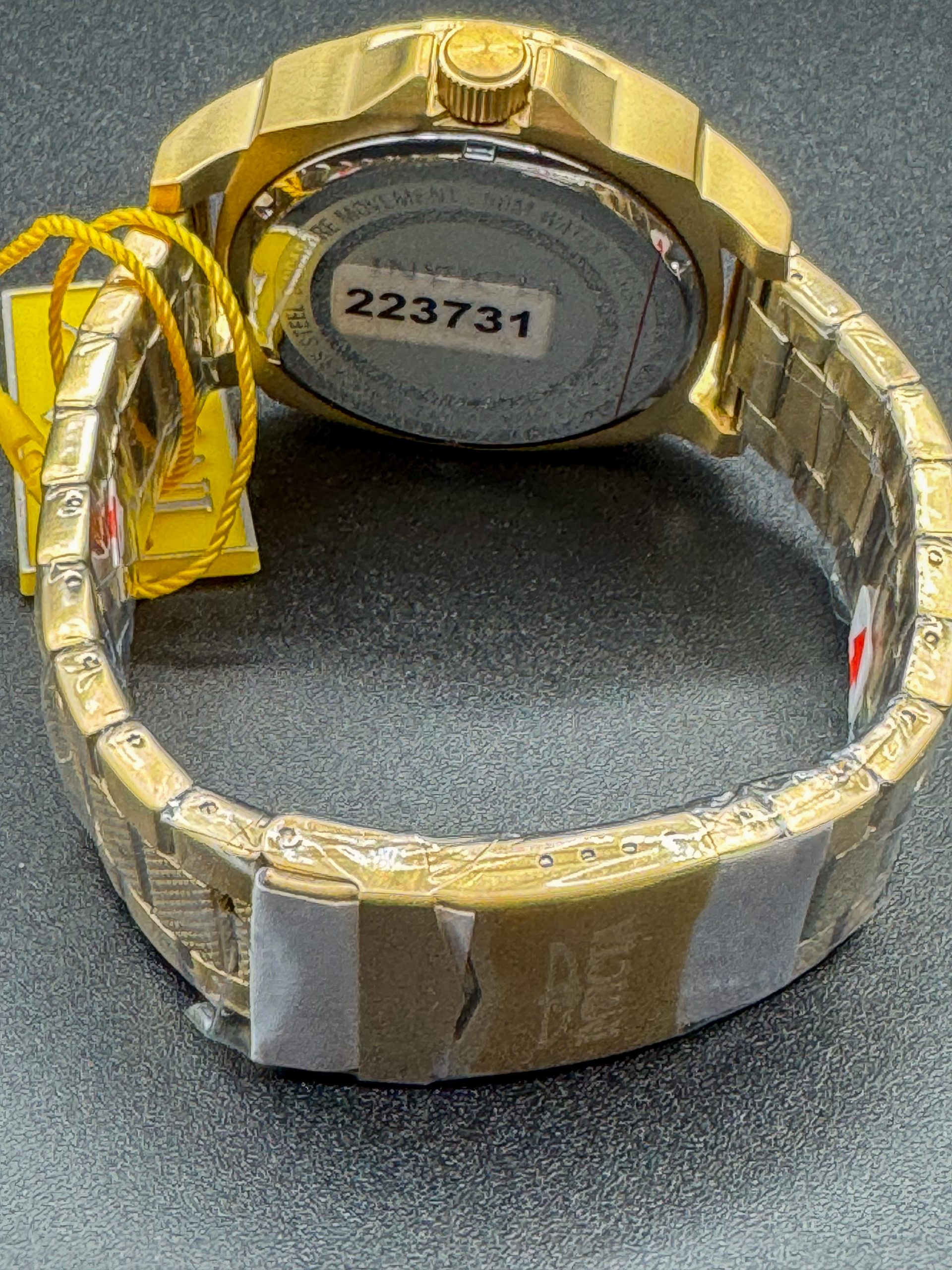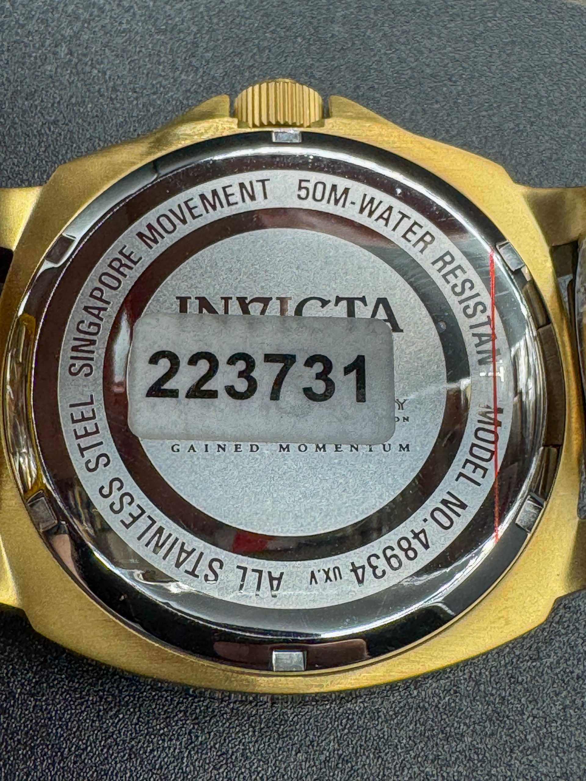The Invicta 48934 from the renowned Speedway collection features a bold 46mm stainless steel case plated in radiant gold. The contrast between the polished gold-tone band and the sophisticated charcoal dial creates a high-end look that stands out on any wrist. Powered by a reliable Japanese Quartz movement, this watch offers precision timekeeping you can trust.