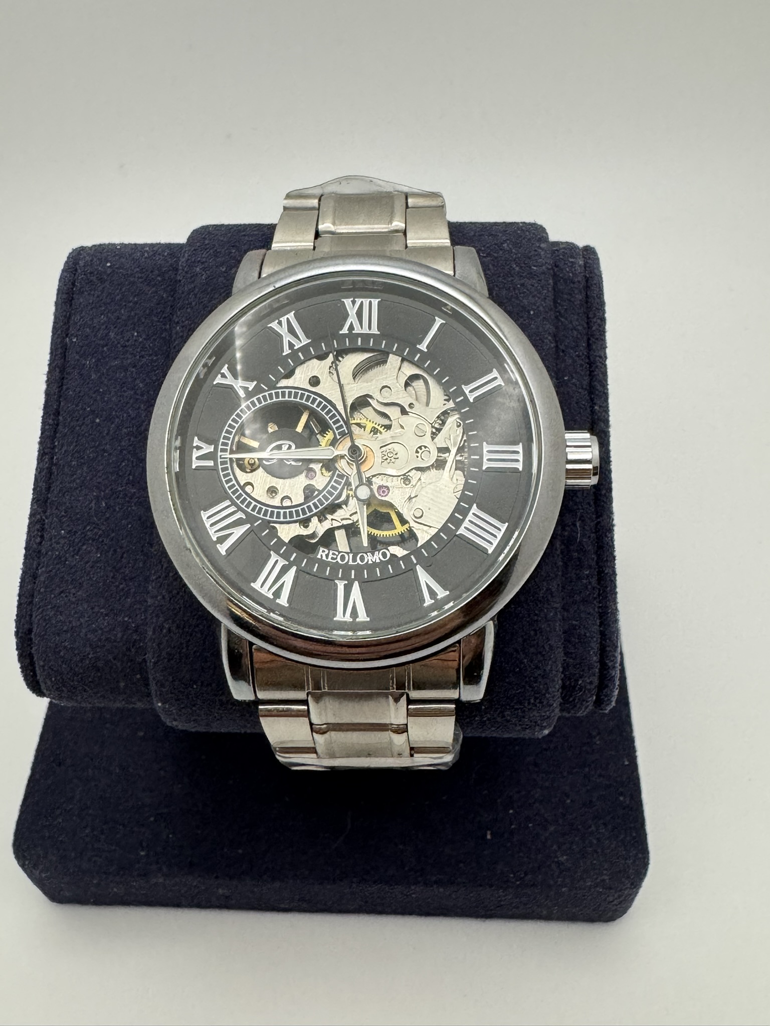 This is a stylish and beautiful black and silver colored Reolomo Skeleton men’s watch model G070!