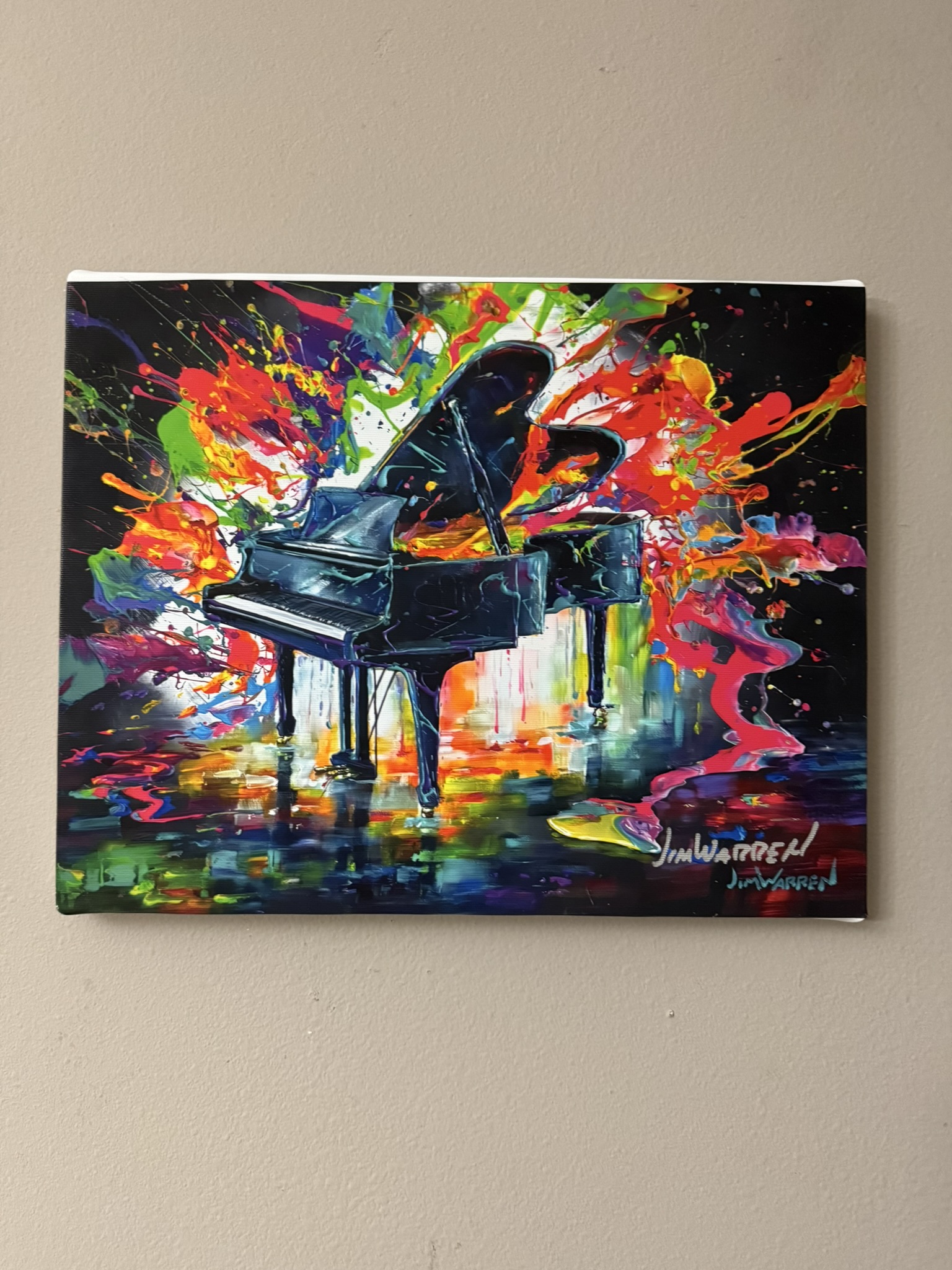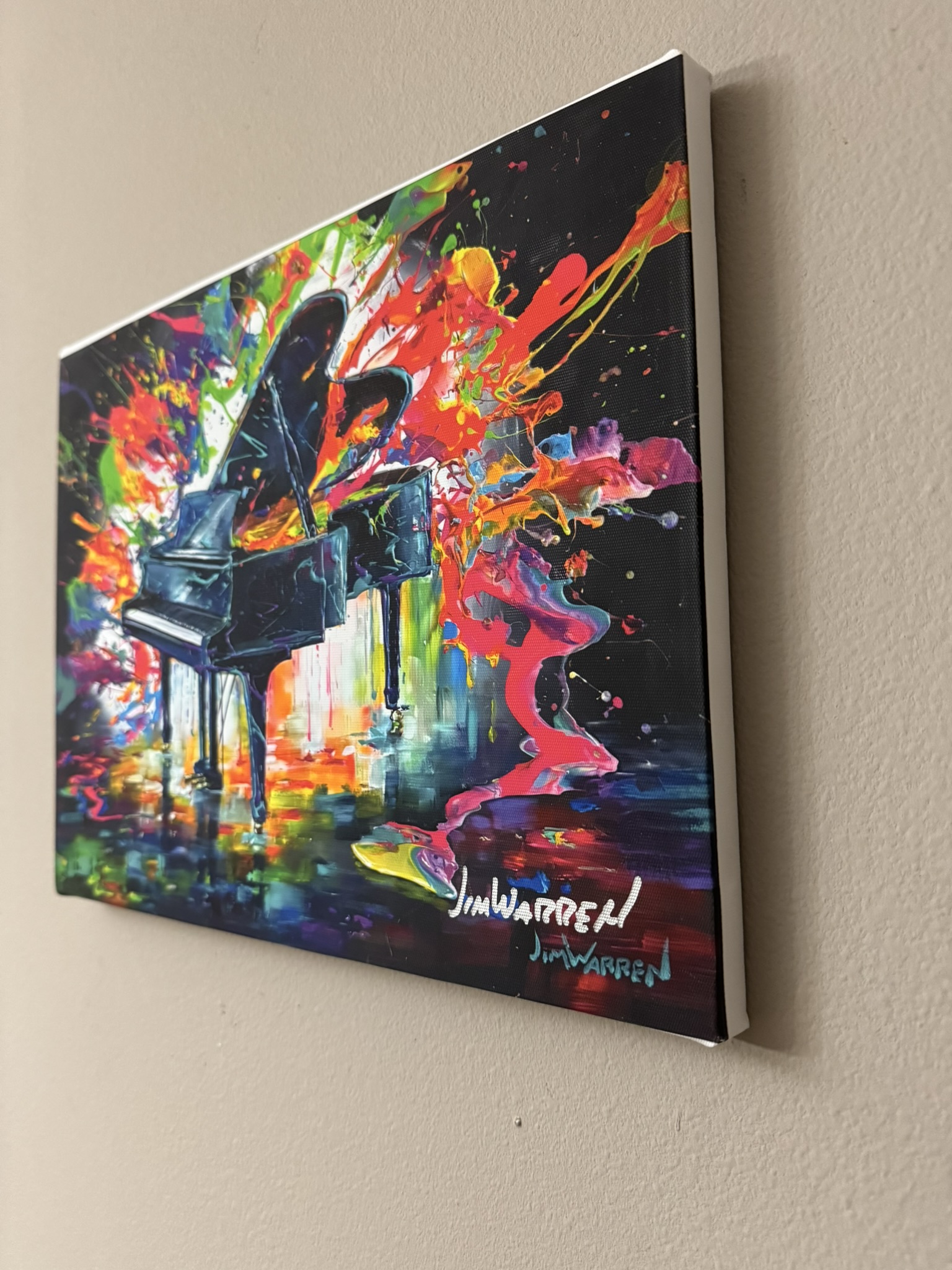 This is an 11×14 Giclee print on canvas by artist Jim Warren, titled “Very Grand Piano.” The Giclee print technique ensures high-quality reproduction of the artwork on the canvas material, providing a detailed and vibrant image of the grand piano depicted in the piece. This art print would make a striking addition to any art collection or room decor, showcasing the intricate details and artistic flair of Jim Warren’s work. This is an open edition piece.
